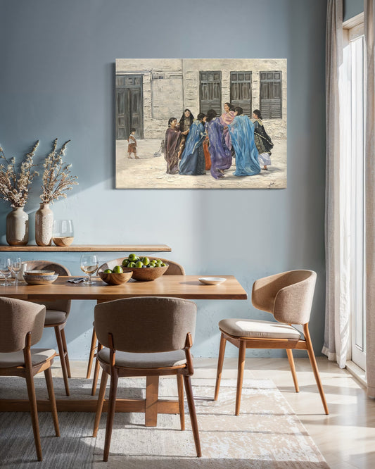 تعتمد فى تشكيل لوحاتها الزيتية أبعادا وخصوصيات تتجلى بالأساس فى رغبة دفينة للحفاظ على بصمات التراث البحريني بكل ما فيها من قيم حضارية وإنسانية.,
