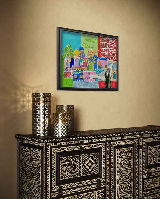 I am a Bahraini visual artist whose vision is inspired by Arab heritage with a contemporary spirit, incorporating Arabic calligraphy into my work as a bridge between authenticity and modernity. I believe that art is a universal language capable of documenting and reshaping identity in innovative ways that reflect the present and evoke roots.