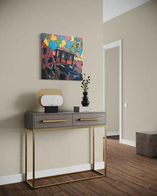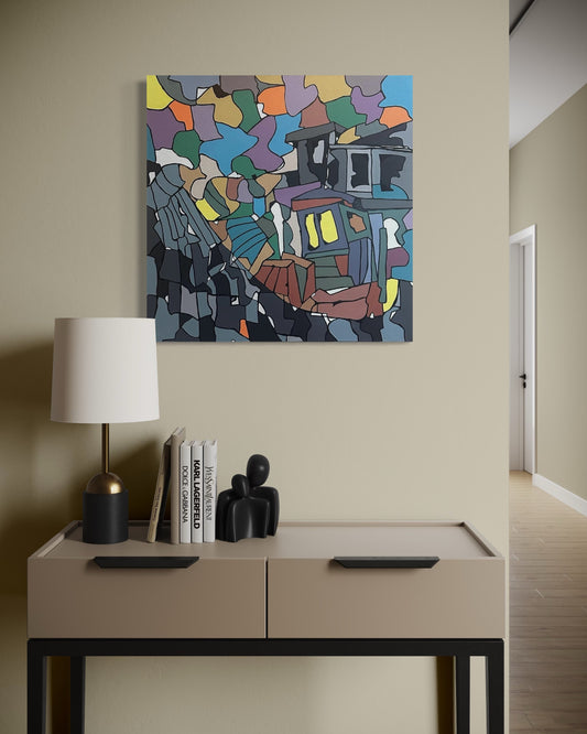 The bold lines and colors that define my work are intentional efforts to share my unique interpretation of everyday life, challenging viewers to reconsider the familiar from an unfamiliar vantage point.