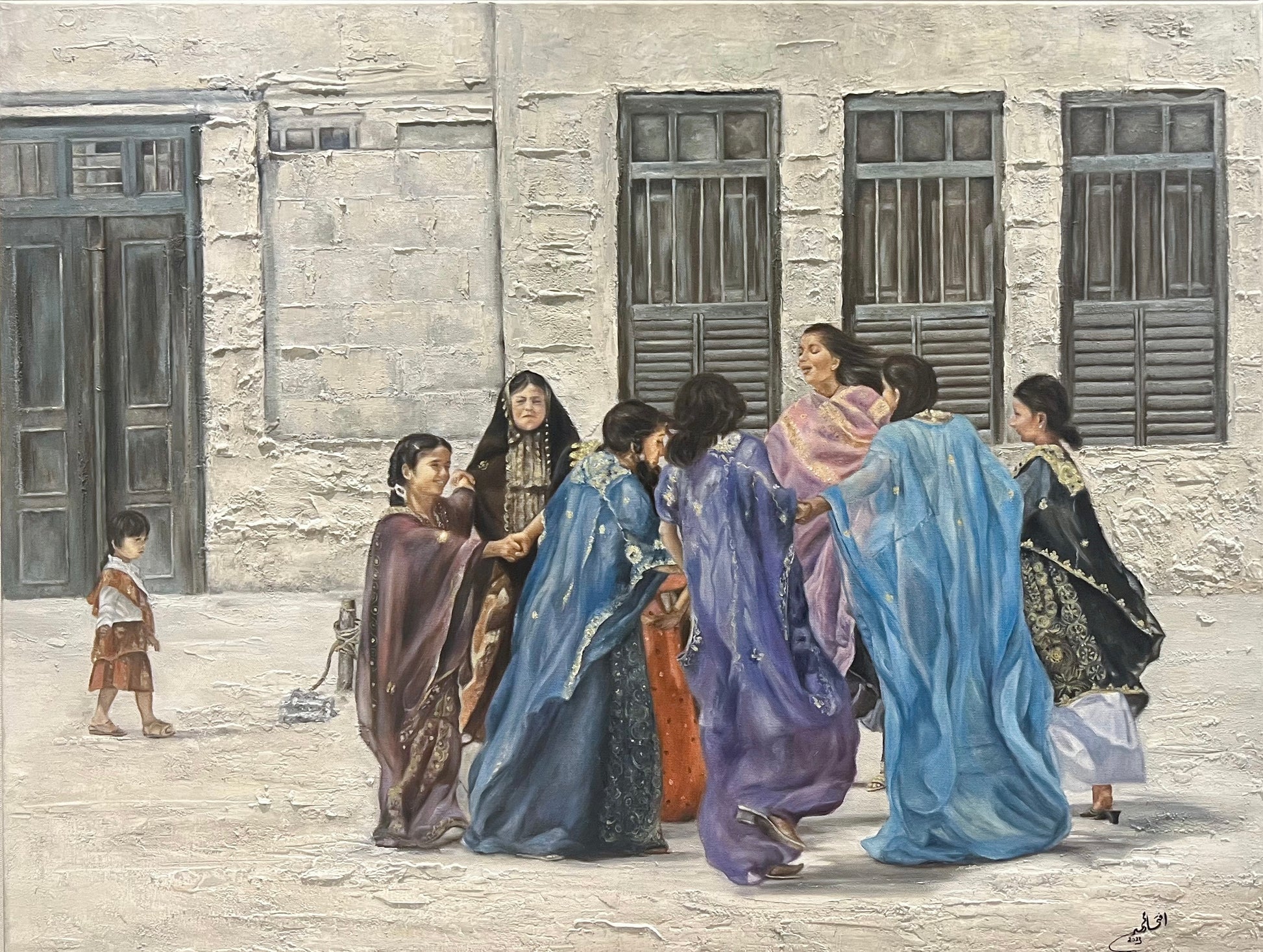 At the heart of Bahraini folklore, the painting "Mill Nail" appears as a window into innocent childhood.