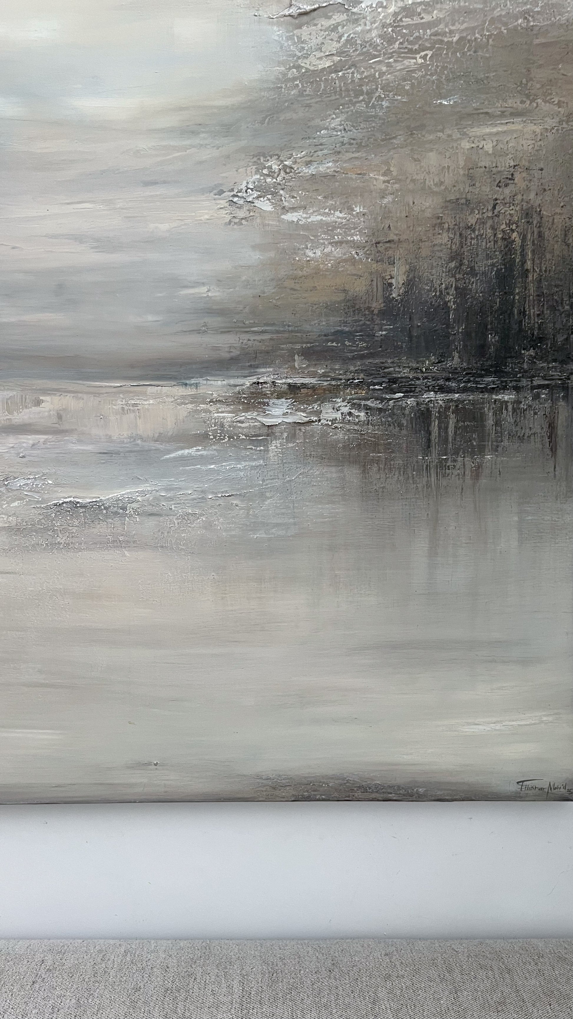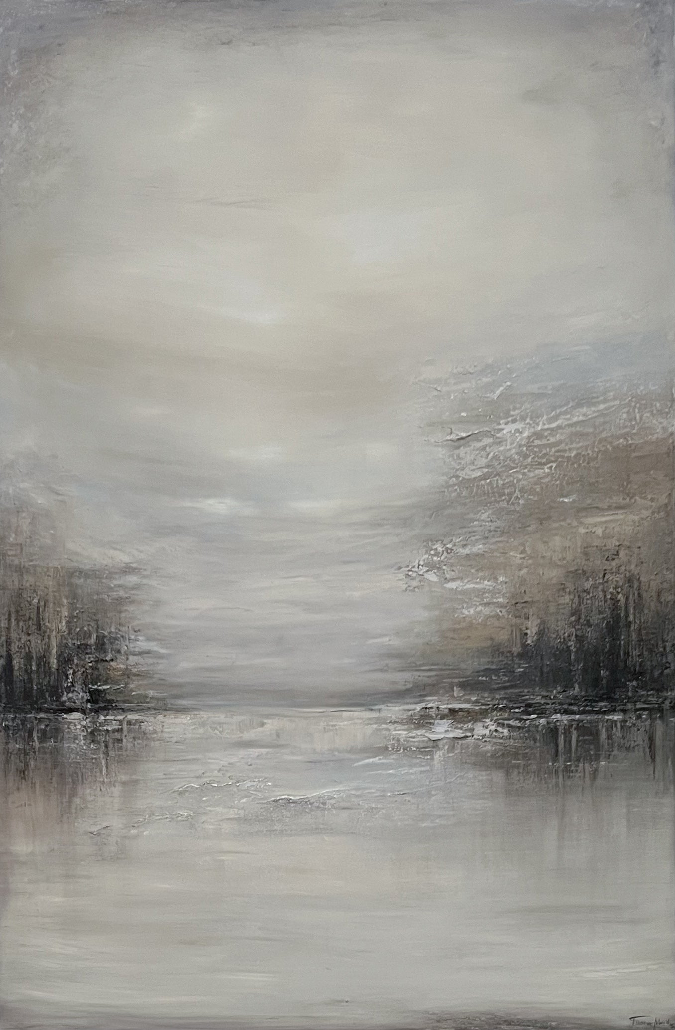 The majesty and mystery of the universe are revealed in this painting, which captivates the viewer with its silent beauty and enchanting depth. The painting captures a magical moment where the sea meets the sky on the horizon—not as a dividing line, but as a mysterious gateway to another world.